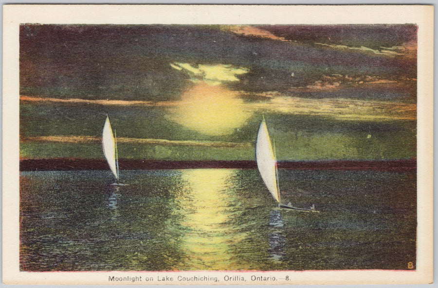 Moonlight Lake Couchiching Ontario Boats Sailboats PECO Postcard – Dee's Postcards